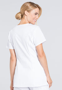 A Maternity mock wrap top features an empire waist with functional side-tie drawstring, and soft, stretchy rib-knit side panels. Also featured are two patch pockets and a cell phone pocket. Our comfy Maternity styles are designed to support and flatter using your current size, so there's no need to size up. When ordering Cherokee Workwear Maternity styles, remember to order your pre-pregnancy size. Center back length: 27 1/2"